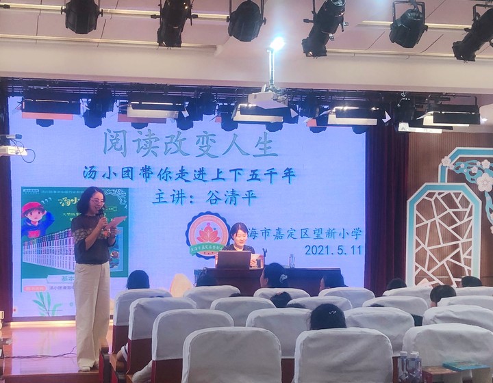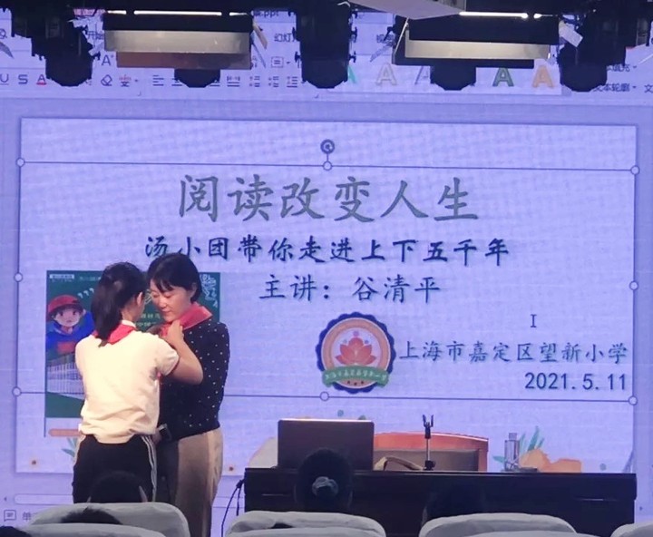 与作家面对面交流,可以激发学生的阅读潜能,让学生爱上阅读。5月11日,望新小学开展了主题为“阅读改变人生”作家进校园的活动,本次活动邀请到了上海知名作家谷清平老师来校给全校师生代表现场讲座。