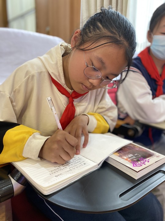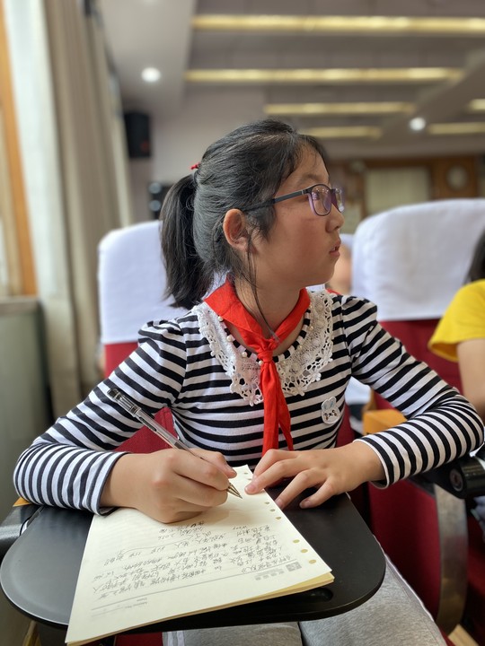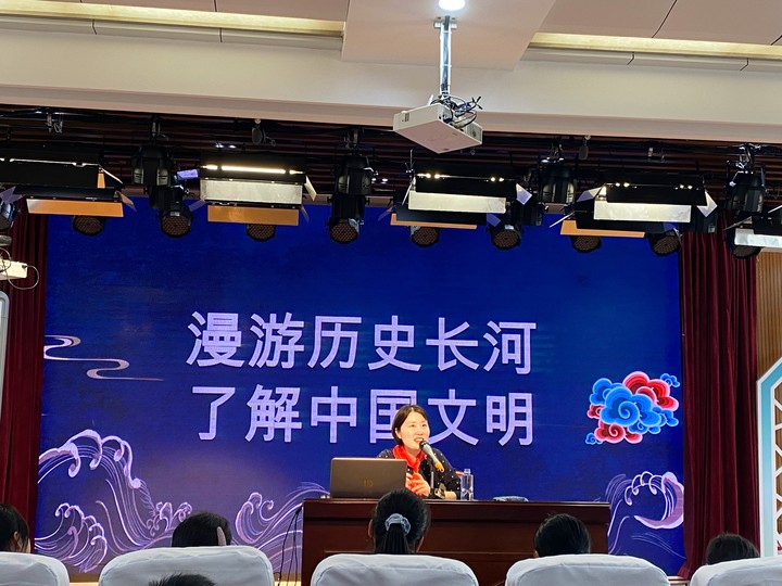 谷老师在讲座中,以一个又一个有趣的历史故事,带领着同学们遨游在历史故事的海洋中。原本乏味无趣的历史知识,在谷老师的口中变得如此生动有趣,同学们听得津津有味,仿佛身临其境穿越回了那悠久的历史年代。讲座中的互动环节学生们热情高涨,一只只小手举得高高的,一份份笔记做得整整齐齐,一张张脸上写满了大大的幸福。……