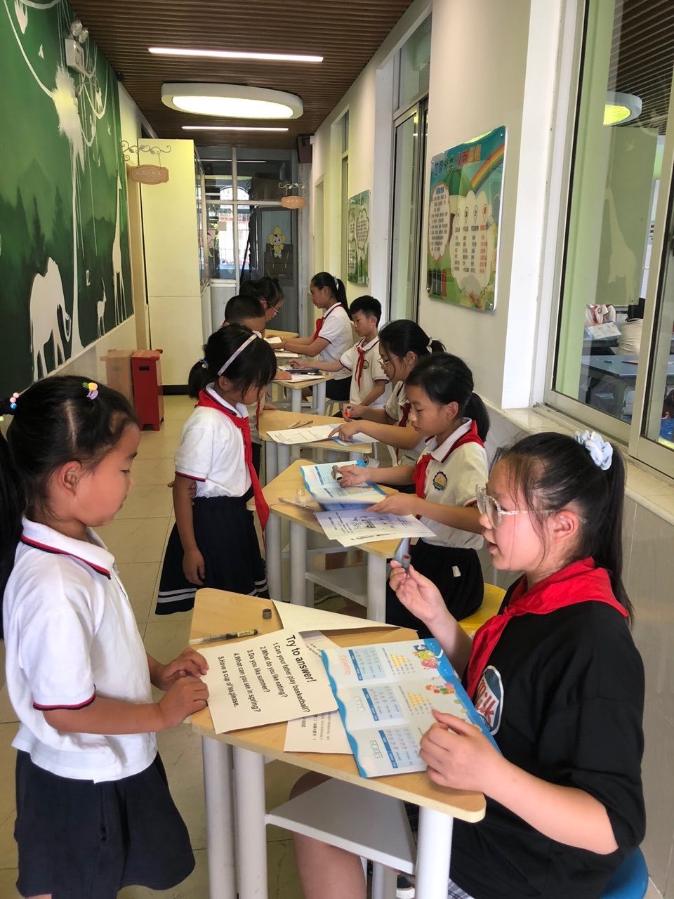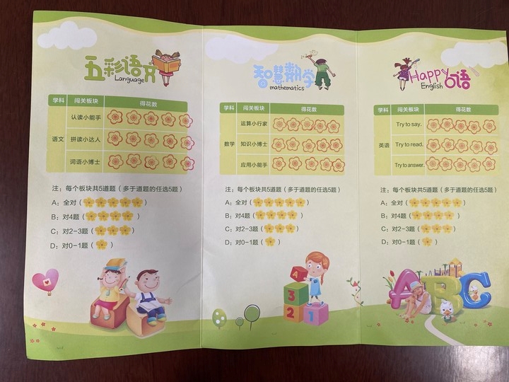 本次活动主要设“五彩语文”“智慧数学”“happy口语”三个主题,各学科基于学科要求,精心策划闯关内容,每个学生持有一份“游园护照”参与活动。活动由高年级的“小先生”们作为考核人员,通过游园前的辅导、游园中的体验、游园后的评价让整个游园活动充实有效、形式新颖、乐趣多多,一二年级的弟弟妹妹们也收获了蜡梅奖章。