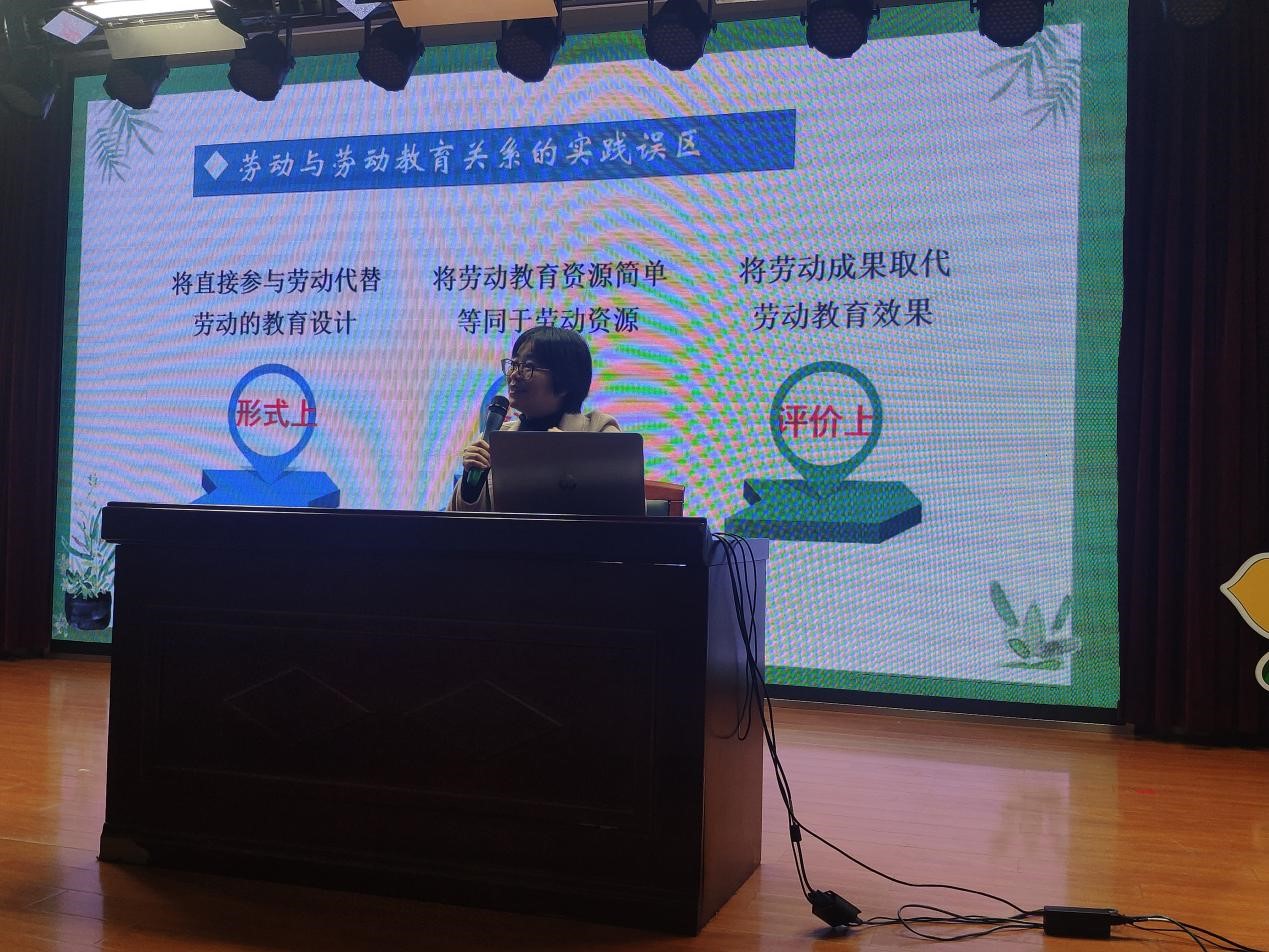 活动中,松江区教育学院德研员蔡晓燕老师应邀来校为全体班主任做“劳动教育”主题培训。蔡老师以深入浅出的语言、生动丰富的案例,从劳动教育问题、劳动教育性质、劳动教育目标和内容、劳动教育途径等若干方面展开。通过此次培训,让所有在座班主任学有所获,学有所悟,进一步充分认识到:劳动教育不仅包括劳动技能学习,最核心、最本质的价值目标是培养学生尊重劳动的价值观以及劳动素养。