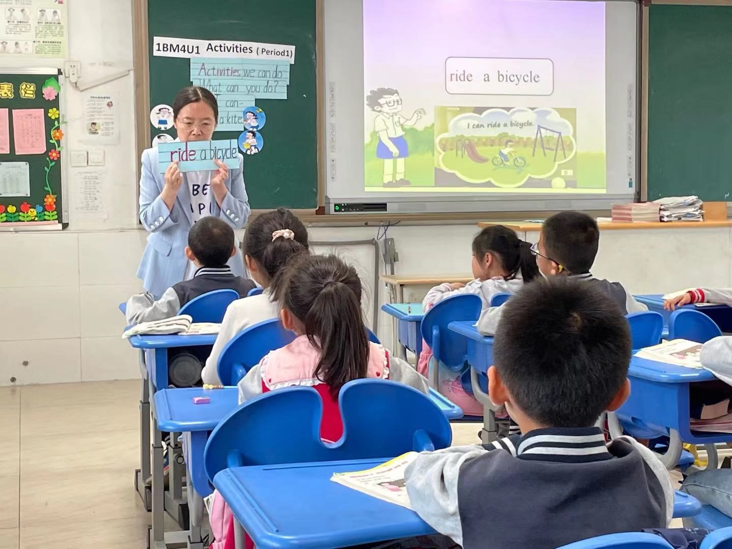 5月26日上午,刘艳老师执教了一年级下学期M4U1P1 Activities一课。在Let’s go to Happy Park这一语境下,刘老师利用图片、视频、儿歌学习有关活动的核心词汇,通过“跳绳”实体动作示范,让学生直观体验skip rope这一活动。刘老师教学结构清晰,教学设计贴近学生实际。在刘老师的引导下,学生参与积极,语言输出顺利,教学基本目标达成。